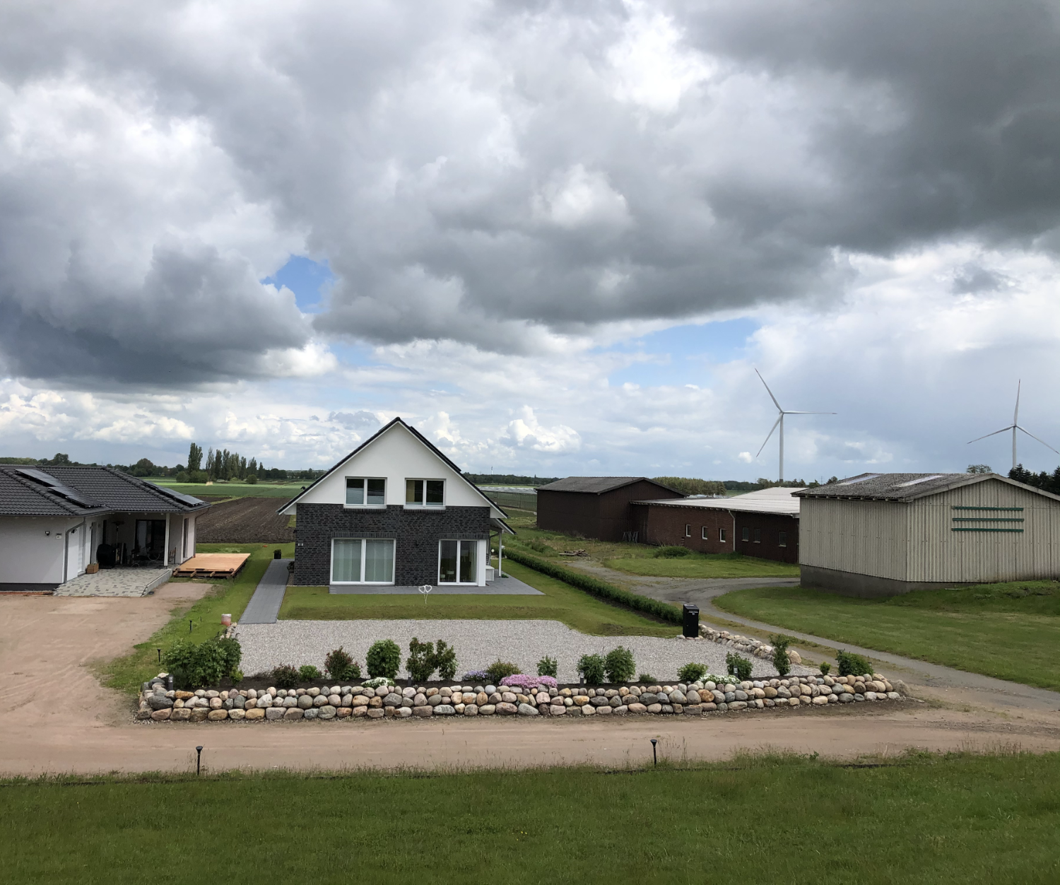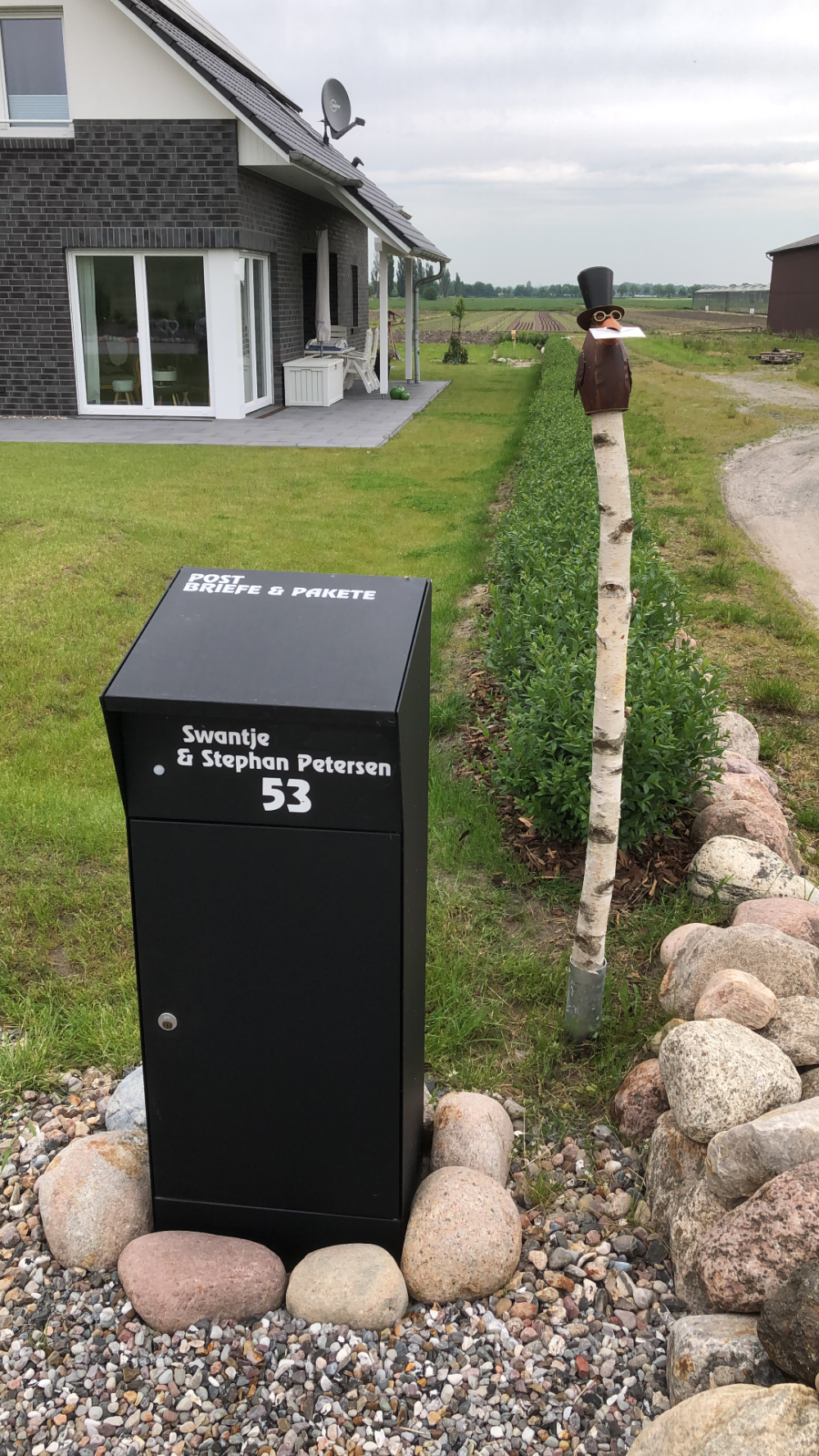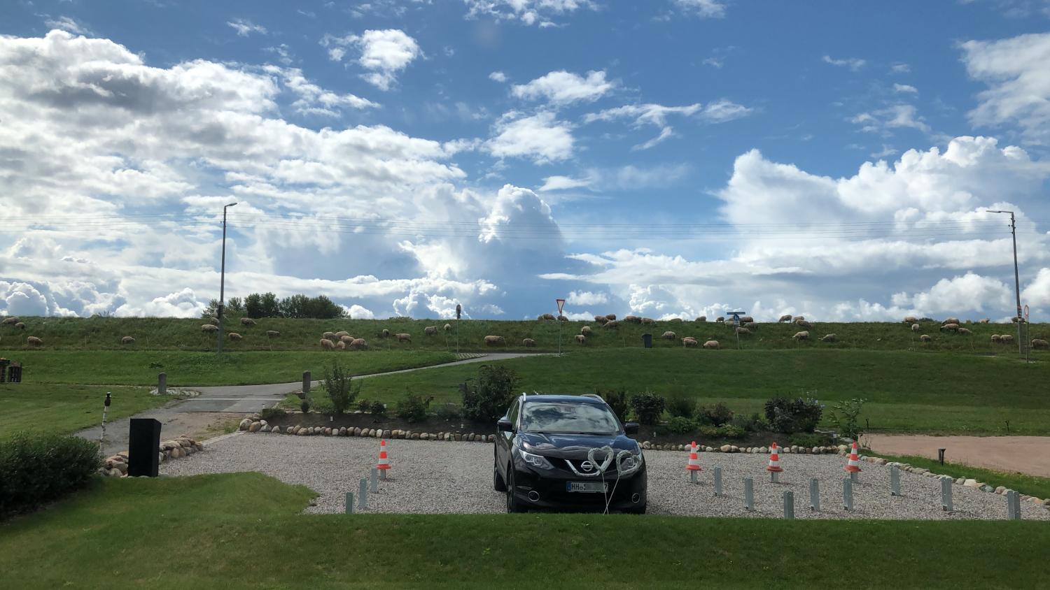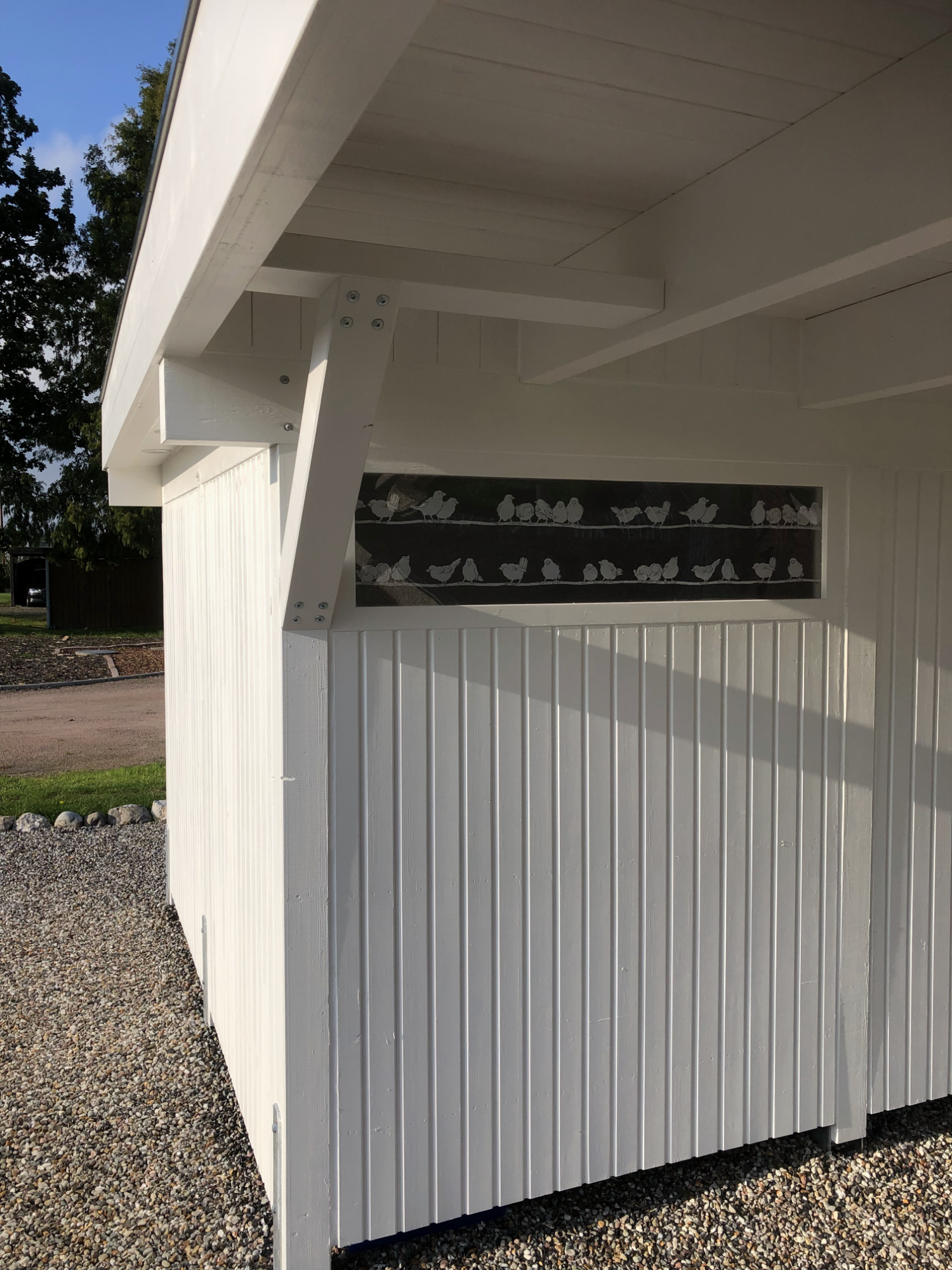 2021: Oops, it's actually been more than a year since our last blog entry. As the house has already been built, of course nothing has changed in the house itself, but a few things have changed around it. In January and February we were very happy to have completed the parking area in front of the house at the end of 2020 and to always be able to park our car on solid ground. Overall, the construction of the gravel stabilisers was a very good idea - especially when it rains there are no more puddles and everything stays dry. 2021 was a special year for us, as we got married civil and in church. In this respect, we didn't build anything around the house in March but forged our wedding rings - very close to us at the dike at Elbgold. The marriage took place in May and July. Newly married, of course, we went straight to the next project - that is, our carport. The foundation anchors for this were delivered in advance in July. Together with our neighbor Rainer, we then set 15 point foundations on our own. The carport itself should be set up by the Joda company from the start, so this was only a matter of preliminary work. At the same time as our foundation work, a fiber optic cable was finally laid at the dike. To connect our house to this network, the terrace behind the house had to be raised again to lay the fiber optic cable into the house connection box. We now expect the connection to the fiber optic network of Telekom at the beginning of 2022 - once they completet the whole network. The wood for the carport was delivered in September 2021 and we were able to start painting everything white before the fitters came to set up the carport. Since several coats (impregnation base / barrier primer / paint) were required, we were happy to have planned enough time for this. At the end of September, the carport, including the integrated shed, was set up within two days. In October we did some fine-tuning on the carport ourselves, i.e. additional cladding of the carport, adding the house number, interior fittings of the carport with device storage, etc. Since the company Joda found the result so beautiful, we now even have an entry on their company website. The last construction work on the property in November / December was the laying of the already provided power cable into the carport and as we will be installing a wallbox for our new electric car at the carport at the beginning of 2022, a LAN cable was quickly laid into the carport as well. You will read more about the connection between the photovoltaic system and the wallbox in the next blog entry in 2022.